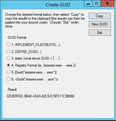 Or you can find this tool here: C:\Program Files (x86)\Microsoft Visual Studio 12.0\Common7\Tools\guidgen.exe